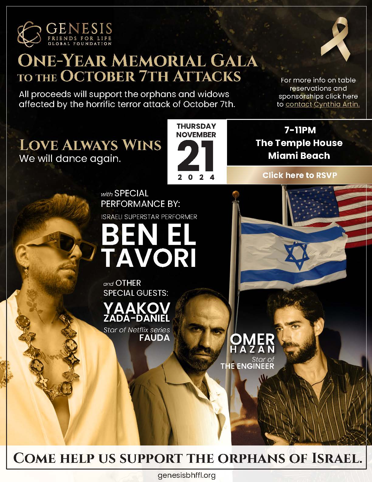 Hosted by the Genesis Friends for Life Global Foundation, the “Love Always Wins” Memorial Gala celebrates the resilience of the Jewish community against the vitriolic antisemitism that has risen in the wake of the October 7th attacks. Gathering together several celebrities and key speakers, the event is dedicated to supporting the orphans and widows who have become victims of war surrounding Israel. All proceeds from the Memorial Gala will solidify a future for those suffering through the Doron Grant for Life program.